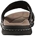 Slide sandal featuring trio of connected leather straps and padded memory foam insole