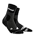CEP ULTRALIGHT SHORT SOCKS: Fits just below the calf for a crew length height. Our Ultralight design allows for greater feel in the foot bed. These lightweight socks are perfect for warm weather, reduceing sweaty feet and hot spots.