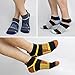Friction & Shock Protection - Our ankle athletic socks use the seamless toe design, reducing the friction between toes and shoes to prevent blister. Cushion on the toe and in bottom with thicker yarn, reduces the impact of friction when your move for extra durability and comfort in high-wear areas, suitable to wear and anti-blister.