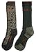 2 pair pack of mid-calf length socks, camouflage sock fiber content 40% merino wool, 40% acrylic, 17% nylon, 3% spandex, solid green sock fiber content 40% merino wool, 40% acrylic, 7% polypropylene, 15% nylon, 5% spandex