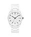 Round white case with white dial and stick indices; white silicone faux-link band with single prong buckle closure