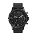 Black stainless steel case with black dial; genuine black leather band with adjustable buckle closure; interchangeable with all 24mm Fossil watch straps