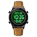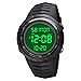 Digital Watch for Men:A stripped-down design with LED display screen, but the watch has multiple functions:Dual time,stopwatch,countdown,date,day,week,daily alarm ,luminous,12/24 hour,EL backlight,easy to read the time at night.