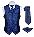 【3PC Mens Vest Ties Set】Pack of 3pc Paisley Vest Set:Waistcoat + tie + pocket square; Same Paisley Floral Novely Pattern design, No worry about how to match. This vest is the best choice for every attractive man