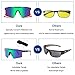 【Sports Sunglasses with 5 Interchangeable Lenses】All lenses come with anti-fog and anti-UV treatment, as well as a REVO-colored coating. The main colorful lens is perfect for general use, while the yellow lens is ideal for night cycling. The gray polarized lens is great for strong sunlight, and the pink lens is suitable for cloudy days. Transparent lenses are also included for night and low-light conditions, providing better protection for your eyes against bugs and debris while doing sports