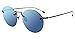 Retro-inspired round sunglasses featuring metal top bar and logo at left lens