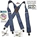 Dark Blue Jeans color HD work suspenders Patented Jumbo no-slip metal clips in Silver/Chrome finish