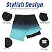 【Summer Beach Gradient Color Bathing Suits】 The board shorts swimwear designed with a elastic waistband with adjustable drawstring, freely adjust your waistline; 2 side pockets and a phone pocket, easy to keep your items; Above knee length beach shorts crafted with coconut tree and hawaill style print design, classic and stylish.