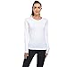 white long sleeve workout top womens combine Crew neck, perfect length and Flowy Curved-Hem for both workout and layering under vest, jacket, scrub/uniform tops.