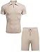 CLASSIC STYLE - This casual mens 2 piece short set is a tried and true classic. Retro style complements with the exquisite texture fulled of personality. This 2 piece polo shorts set for men feature a zip neckline, ribbed and solid color for a classic and simple style.