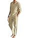 Men's cotton linen set is made of premium fabric,ultra-soft, lightweight and breathable, keep you cool all the time in summer.
