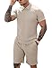 CLASSIC STYLE - This casual mens 2 piece short set is a tried and true classic. Retro style complements with the exquisite texture fulled of personality. This 2 piece polo shorts set for men feature a zip neckline, ribbed and solid color for a classic and simple style.