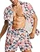 DESIGN HIGHLIGHTS: This classic , casual summer flower hawaiian short set provide kinds off floral print and solid color, the combination of rich colors and fashionable printed will not let you down, colorful vibrant prints always attract people's eye.
