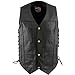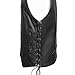 Adjust Easily. The black motorcycle leather vest for men has metal YKK zippers for pocket closure, stainless steel snap on buttons for front closure, and adjustable leather side laces for making quick and secure adjustments on-the-go