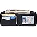 The interior features multiple compartments to keep cards, cash, and an ID securely in place. Measures 4.35 x 3.55 x 0.8 inches when closed and 8.45 x 3.55 x 0.6 inches when open.
