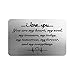 Unique Engraved Gifts - Nice deeper engraving, you can feel it with your fingers. Permanent engraved words on the wallet insert card are clear and easy to read: “ I love you ”. Engraved words won't fade or wear off. The unique gifts will be appreciated by your love for many years to come. Metal cards come with a blue envelope with a gold trim.