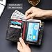 LARGE CAPACITY WALLET: 1 big zipper cash slot + 1 big accessory slot (large enough to hold the 11 pro max) + 3 receipt slots + 22 card slots + 3 clear windows(for ID and photos) +1 removable card holder(including 5 card slots+1 ID window)= an extremely powerful multifunction wallet at the most slim size.