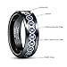 The black tungsten ring in 8mm in width, which has Horoscope pattern on the surface the ring, and the wedding band inlaid with blue carbon fiber.