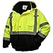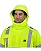 SAFETY BOMBER JACKET - Premium high vis jacket featuring: (1) clear ID pocket, (2) front pockets & (1) chest pocket large enough to hold phone/tools, (1) arm pocket, (1) interior pocket, (1) foldable hideaway hood & (1) heavy duty zipper closure to keep you warm day/night. This men's work jacket keeps you dry by withstanding light rain, wind & other weather. Insulated reflective jacket men includes adjustable elastic wrist cuffs allowing you to keep in warmth & move freely w/ a comfortable fit.