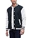 Classic Leather Varsity Jacket : Wool faux leather baseball jacket with stand collar, button down bomber jackets designed for the slim fit style, the perfect combination of spliced design and striped ribbed neckline and hem embellishes the overall sense of fun, not so old-fashioned, and reveals a masculine elegance. This is letterman jacket with a strong hip-hop style