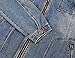 Details of Mens Denim jacket: button down closure, single breasted, long sleeve, loose fit, turn down collar, 2 chest pockets and 2 side pockets. Cuffs have tack buttons for ease in taking on and off.