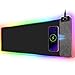 ★★★【Fantastic RGB Colors】: The RGB mouse pad's size is XXL mousepad features 7 static light modes and 2 dynamic light modes; you can choose your favorite color according to your needs. One button control light modes. It have memory function- remembers last time lights mode. The colorful lights provides visually of vibrant colors and stunning effects. It's the best wireless charging mouse pad and desk mat for your desktop. A must device for rgb muose pad fans. Perfect for your gaming or working.