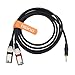 Balanced XLR Splitter Cable, 1 XLR Female to Dual XLR Male, This XLR Y-cable is designed to connect an XLR output to two XLR inputs, It is ideal for assigning the signal from a microphone to two channels on a mixing console. Compatible with equipment with 3-pin XLR connectors such as shotgun microphones, studio harmonizers, mixing boards, patch bays, preamps, speaker systems, mixer, amplifier, equalizer, limiter, crossover, digital decoders, and stage lighting.