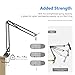 【Upgraded C-Clamp Mount】 Redesigned for increased stability, the upgraded C-clamp features a wider base and a larger opening for desks up to 2.67”(6.8cm) thick. It also has a non-slip rubber pad to protect your desk from scratches and a hook for holding over-ear headphones