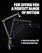 Long boom arm and height adjustment for different performance needs.