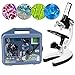 MICROSCOPE KIT INCLUDE: Microscope, Slides, Slide Cover, Cover Glasses Slips, Brine Shrimp Egg, Gum Media Dye,Eosin Dye, Sea Salt, Shrimp Hatchery, Micro Slicer, Petri Dish, Tweezers, Specimen Vials, Test Tube, Stir Bar,Needle, Scalpel