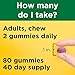 HOW TO TAKE: Ages 4 and up, take two gummies per day as needed. Chew thoroughly before swallowing, no food or water needed. 50 gummies per bottle (25-day supply)