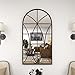 BLACK AND MIRROR DISTRESSED FINISH: This arched oversized floor mirror features a reflective glass finish and a black metal finish