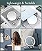【 Portable Size 】: 7.6" diameter, 0.9" thick after folding. The foldable design does not take up much space. You can carry it with you in daily life, or when you are traveling or on business. NOTE: When using a magnifying mirror, your face must be slowly brought closer to the mirror to focus in order to get a clear picture.