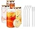 PRODUCT CONFIGURATION: Drinking glass set includes 4 can-shaped glass cups [ Diameter - 3 inches, Height - 5.8 inches ],4 nature bamboo lids, 4 reusable glass straws and 2 cleaning brushes, Classic design, Very practical combination suit.