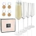 SHAPE DESIGNED BY WINE ENTHUSIASTS - As lovers of wine, we know that the shape of the glass matters. The Emmie is a modern take on the classic champagne flute, trapping and preserving the bubbles in the glass. The glass has a longer stem to hold which prevents the champagne from warming in your hands.