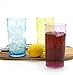 VIBRANT COLORS: Set of 4 glasses includes 4 different colors- blue, orange, purple and green. Fun to mix and match your dinnerware