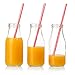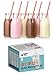 Value set of 12 high quality reusable glass milk bottles with BPA free plastic straw and metal screw-on lids
