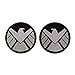 A pair of patches, each featuring the logo of S.H.I.E.L.D., the fictional spy agency from comics and movies.