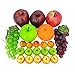 22 Pcs Fake Fruit Set: Delicious red apple×2, round red apple×1, green apple×1, orange×1, green grape×1, purple grape×1, mini red apple×5, mini green apple×5, mini yellow pear×5
