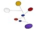 An elegant mobile consisting of six wire arcs from which seven colored wings protrude. The design plays on the contrast between the upward curve of the wires and the downward curve of the wings. The mobile is delivered in the color combination as shown on the picture, but for your convenience we have added the following colors for you to change if you wish: The small: 1 extra yellow and 1 extra black The large "curves": 1 black, 1 green, 2 grey, 3 yellow, 3 red (subject to alteration).