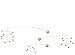 The first mobile by Ole Flensted, designed in 1970. Bars of light and heavy elements in dynamic tension suggests six planets with their moons - or perhaps different levels of the light and the dark sides of the personality? Also in a large size, FM-110b