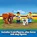 Includes 2 LEGO minifigures, a horse figure and a dog figure, and accessories: a toy saddle, riding helmet, grooming brush, carrot and crate