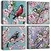 SIZE: Each 12x12, 4 canvas prints with vintage blue bird motif theme for modern wall decor.