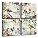 SIZE:each panel 14x14,total 4 panels,vintage Blue Little bird pattern themed canvas prints, modern wall decor.