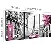 Eiffel Tower Wall Art Design:HD pictures of pink leaves, phone booths, cars, black and white buildings and the Eiffel Tower. The color collision of pink and black-white will make you feel the artistic sense of the Paris and make your home full of modern art atmosphere.