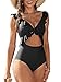 【Features and Designs】 Women Plunging Deep V Neck Flounce Falbala Cut Out Padded Tie Front One Piece Swimsuits; Adjustable Back Shoulder Straps Backless Lace Up Back One Piece Monokinis Bathing Suits
