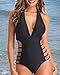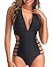 Sexy one piece swimsuits: This swimsuit has a deep V-neck plunge, an open back, and cutout details on both sides. It is eye-catching, stylish, and creates an hourglass body shape.