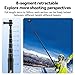 【Lightweight And Compact】 Net weight only 13oz/374g, portable,extendable and compact enough to carry in a purse, backpack, or slip in your back pocket. The best ideal action camera selfie pole for surfing, diving, snowboarding, skiing, skateboarding, traveling, live events and much more.