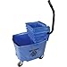 Compact Mop Bucket: Has a 22-qt capacity basin with an attached upward press wringer to extract excess water from a mop and funnel the liquid back into the bucket.