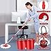 【Wide Application】The spinning mop and bucket is wet or dry usage, 360° microfiber spinning mop head easily reaches any difficult corners and gaps without feeling the scrape, with excellent absorption capacity, deep-cleaning microfiber removes and absorbs tough dirt, dust, pet hair, grime, perfect for all types of surfaces, like laminate, hardwood, ceramic, tiles, glass, etc. Microfiber Mop Head is machine-washable and reusable.
